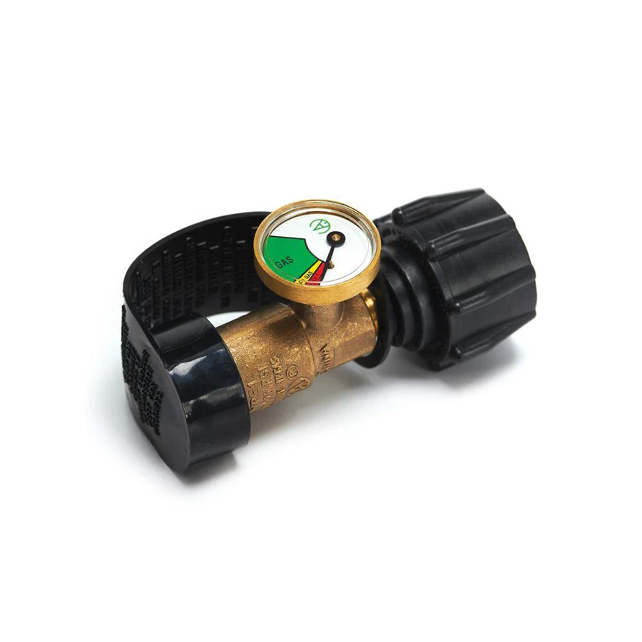 • Easy-to-read indicator gauge lets you know if your propane level is good, running low, or time to refill your tank
