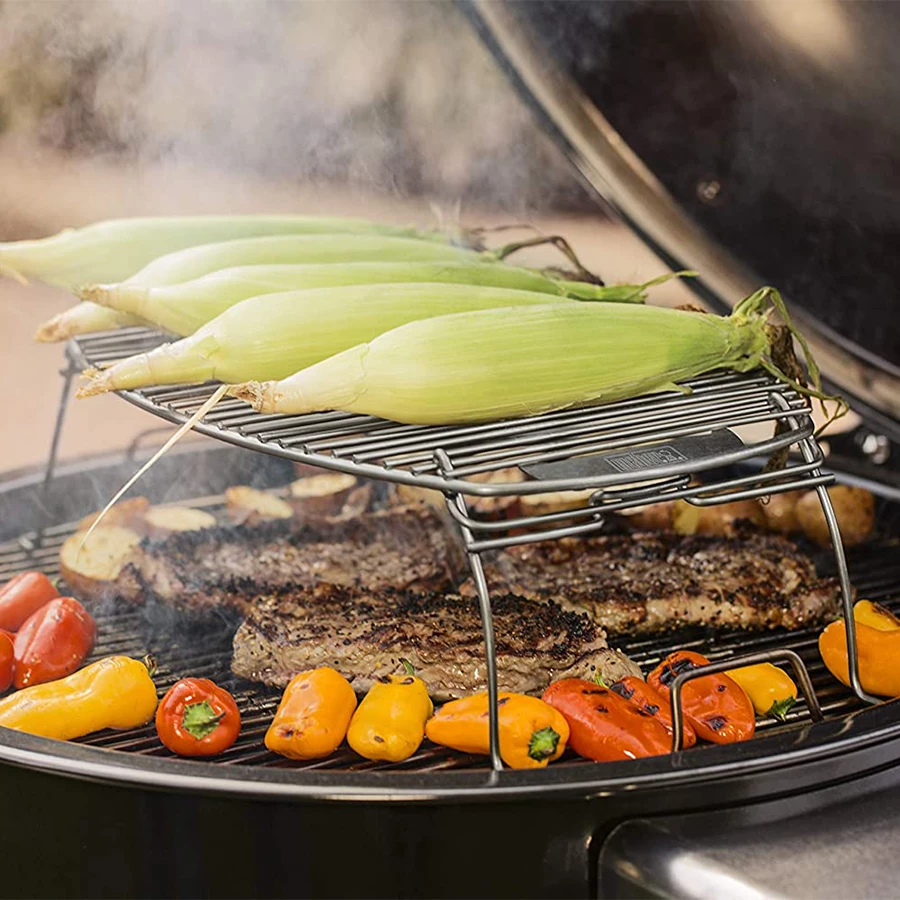 Prepare your main dish, sides and even toast your bread all at once with the Grilling Rack. The versatile rack elevates your grilling possibilities by acting as a second grate that hovers over the main cooking grate. While the burgers cook, warm your toppings and toast the buns overhead so that everything is ready to go once the table is set.